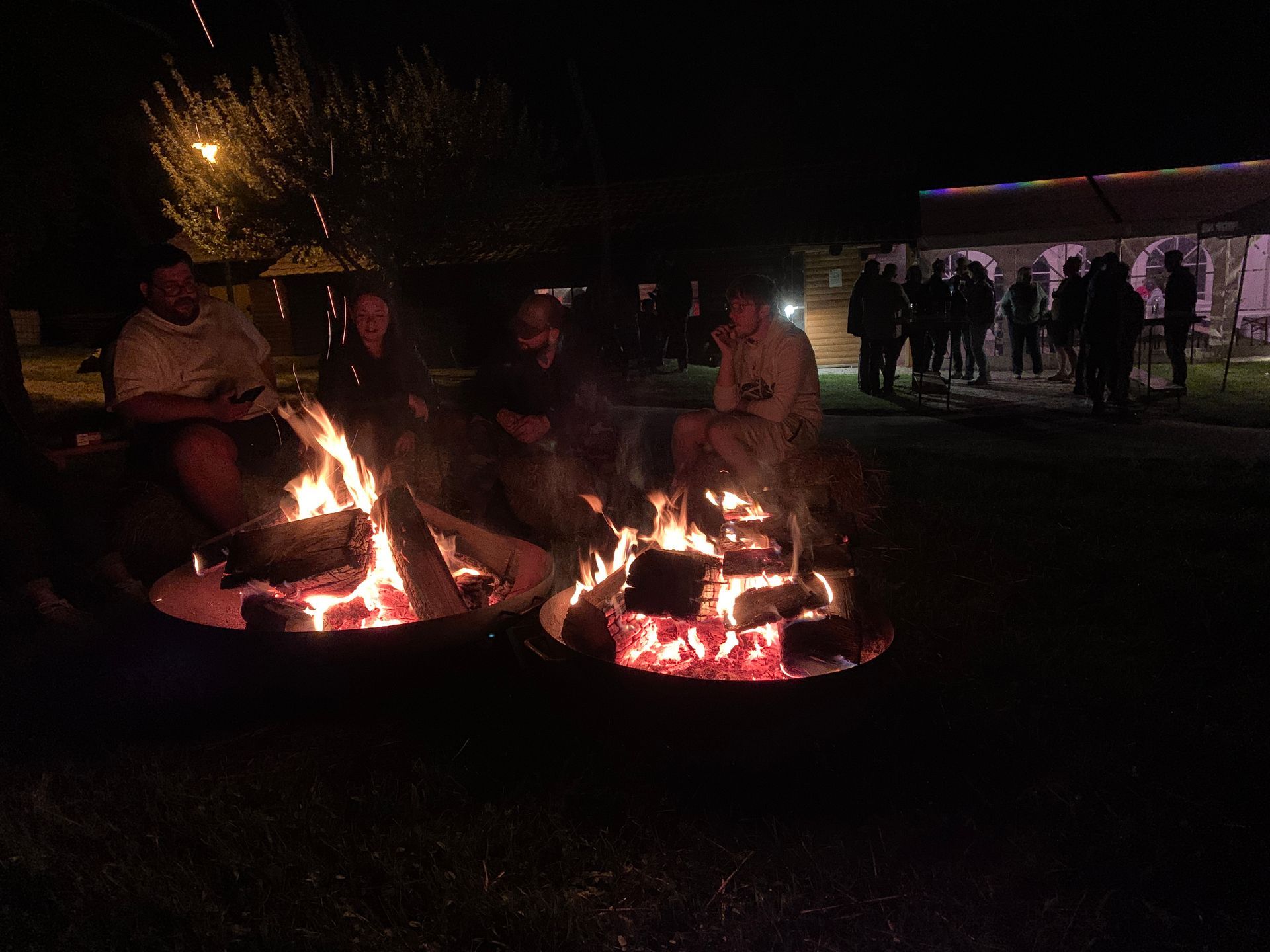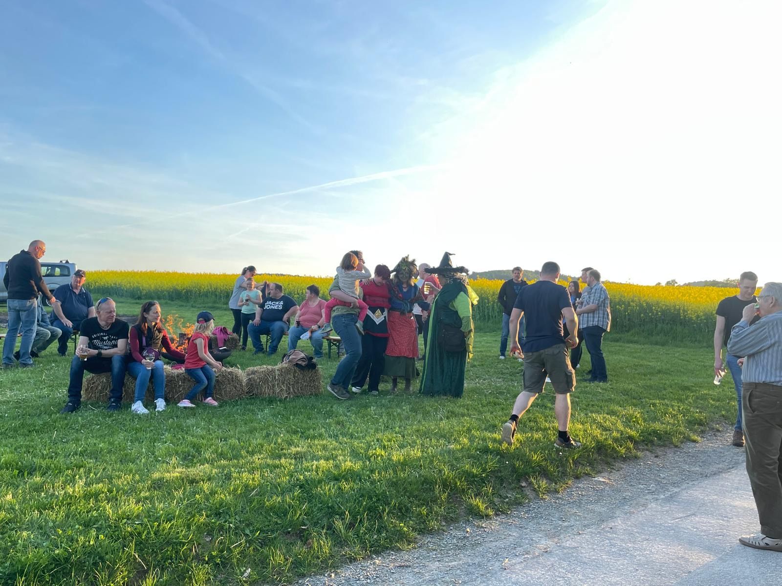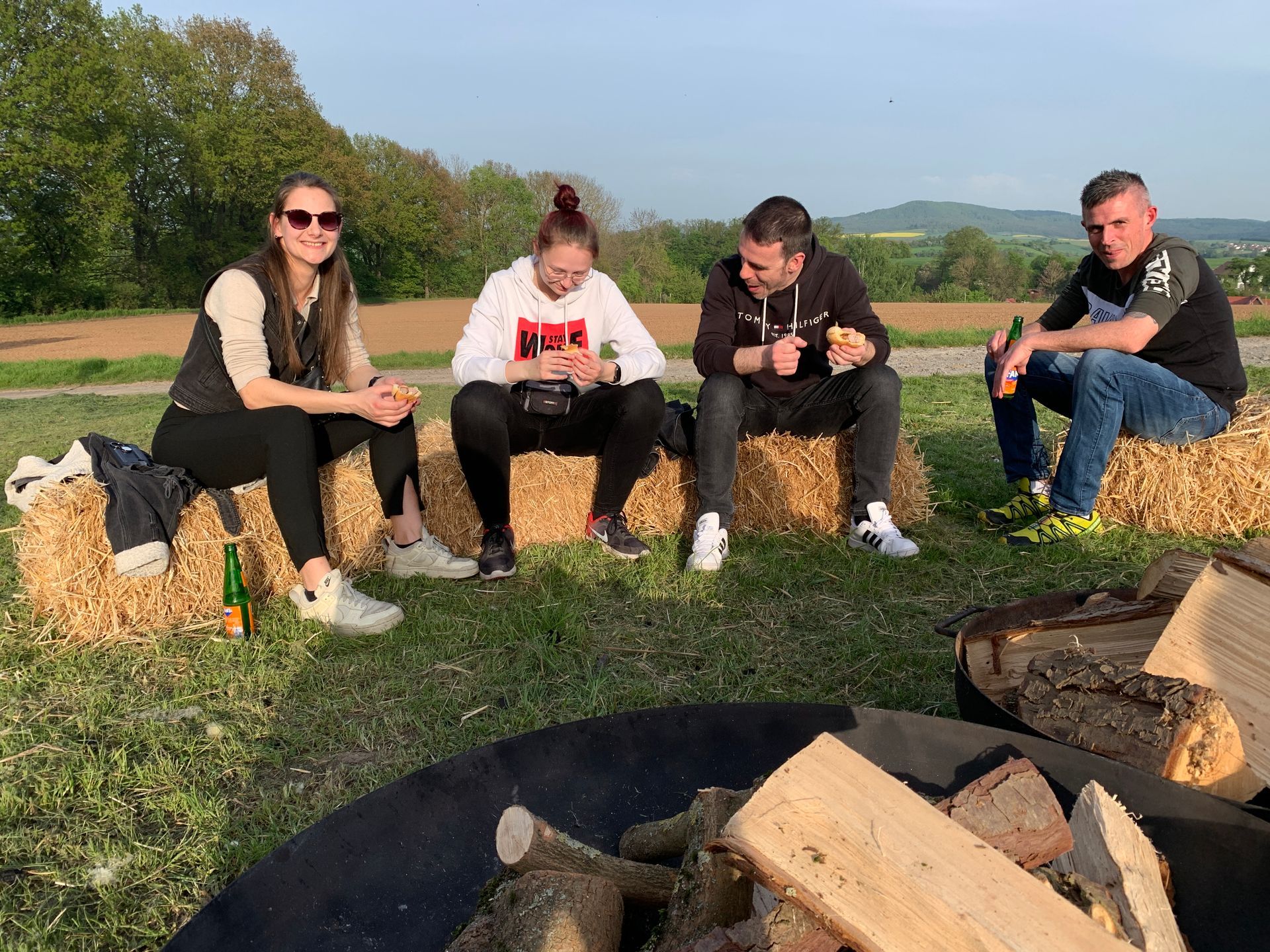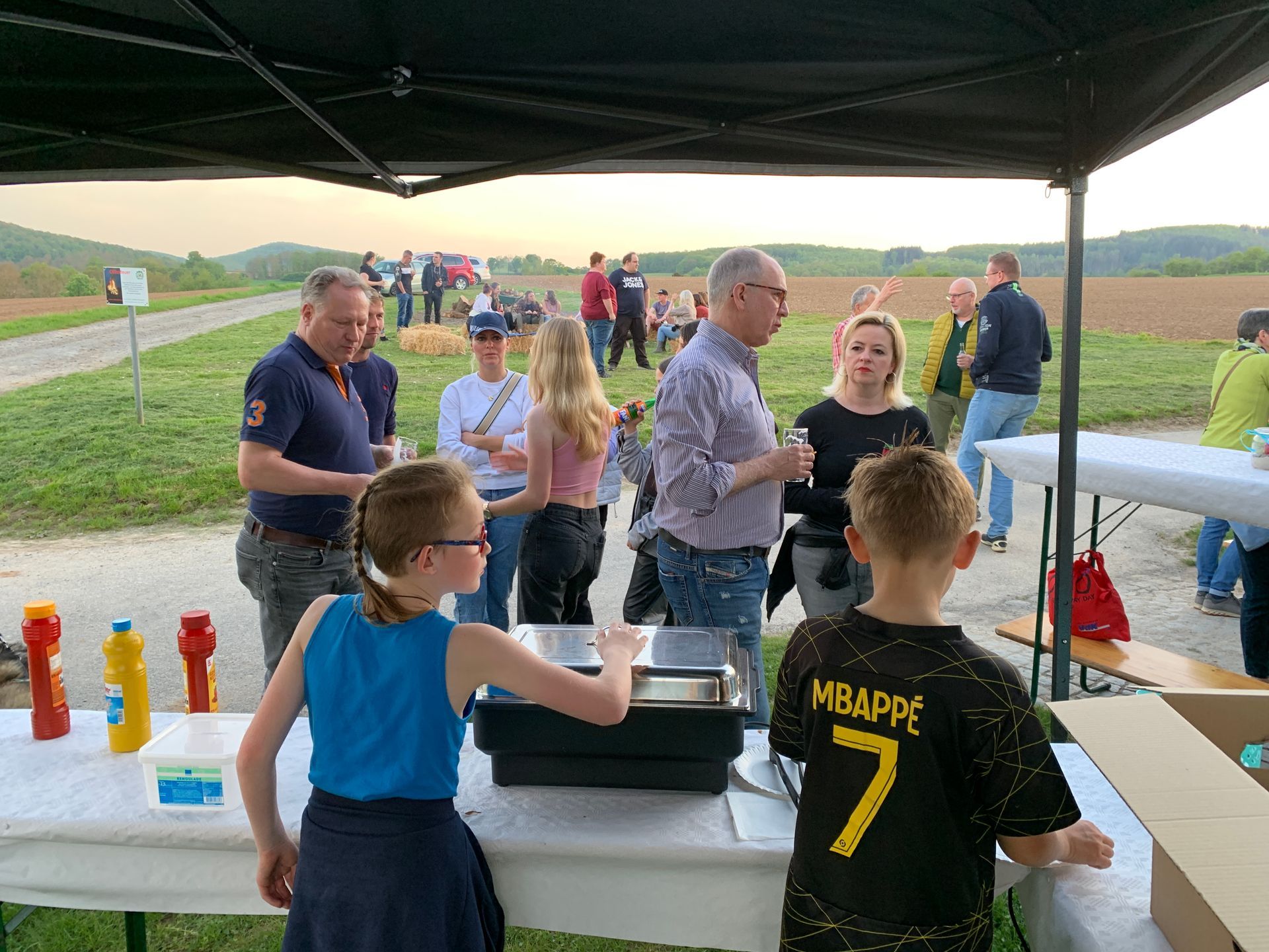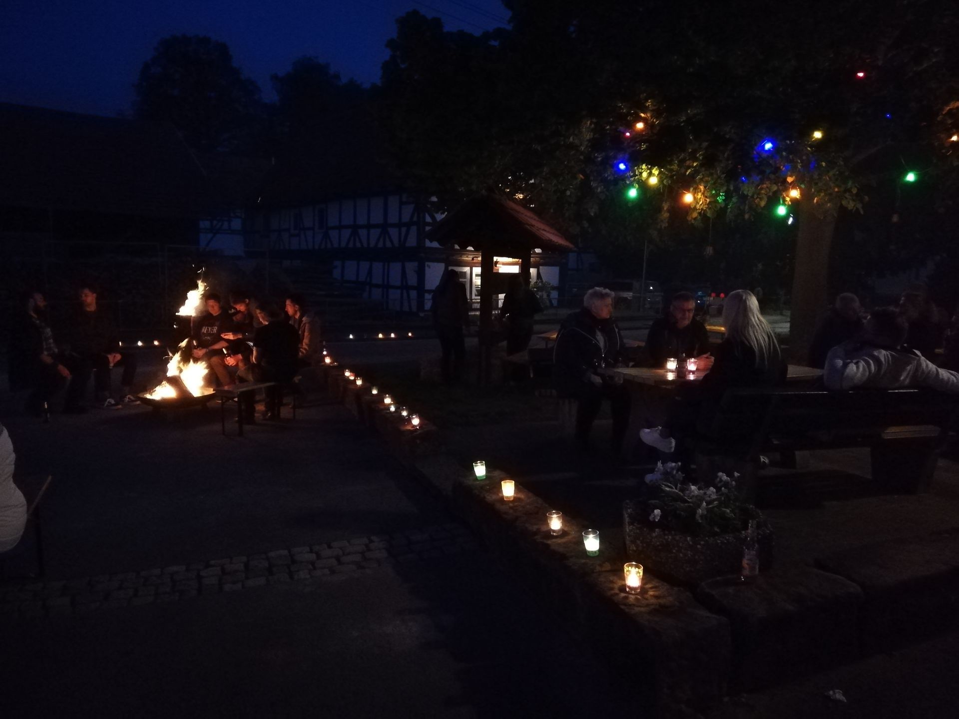 Es gab zu Beginn das Kuchenbuffet, über 16 Kuchen haben wir stolz präsentiert. Dann ging es mit leckeren Bratwürtschen weiter und bei Einbruch der Dunkelheit gab es Stockbrotteig für die Kinder und buntes Feuer an zwei Feuerstellen.