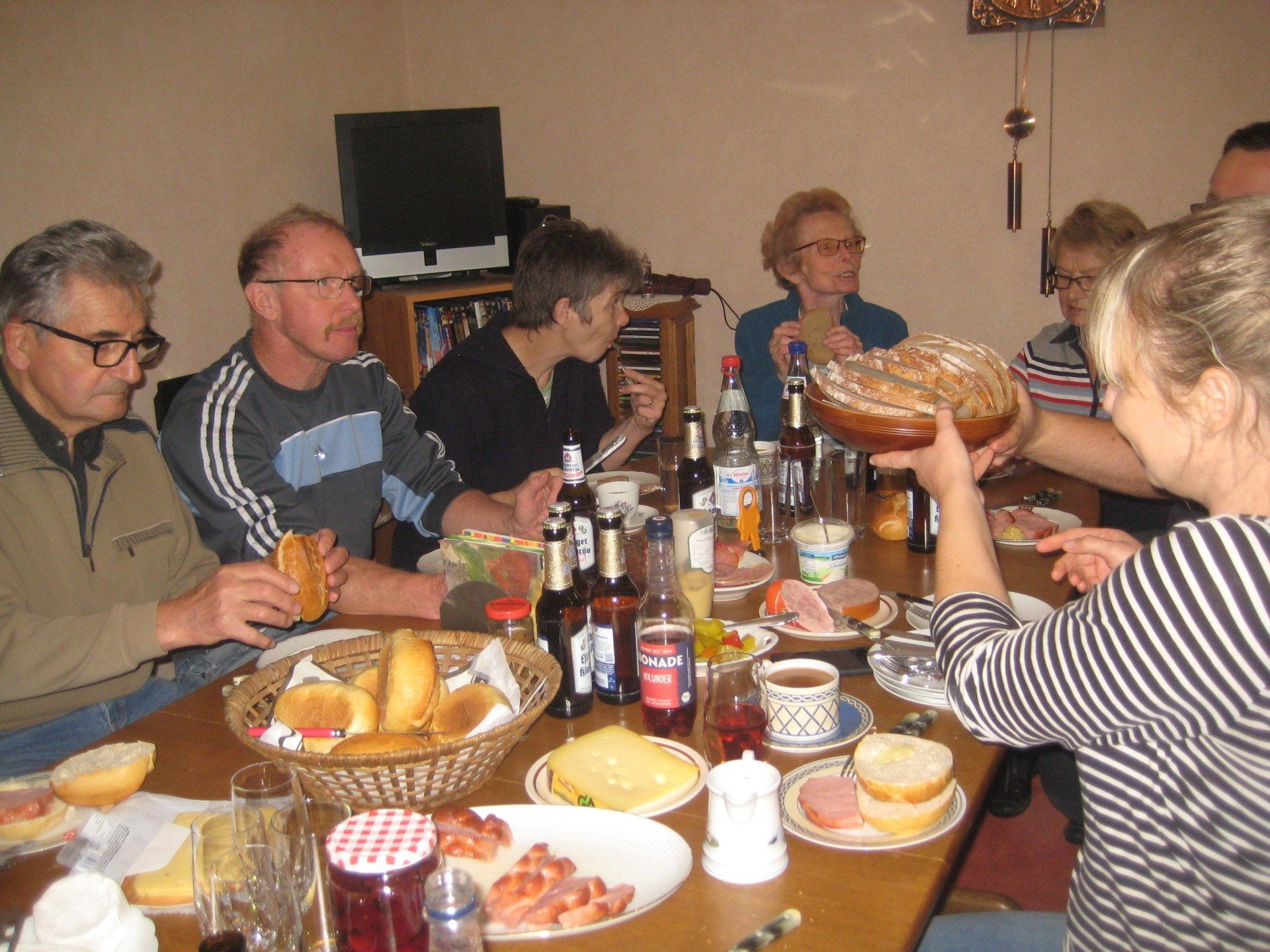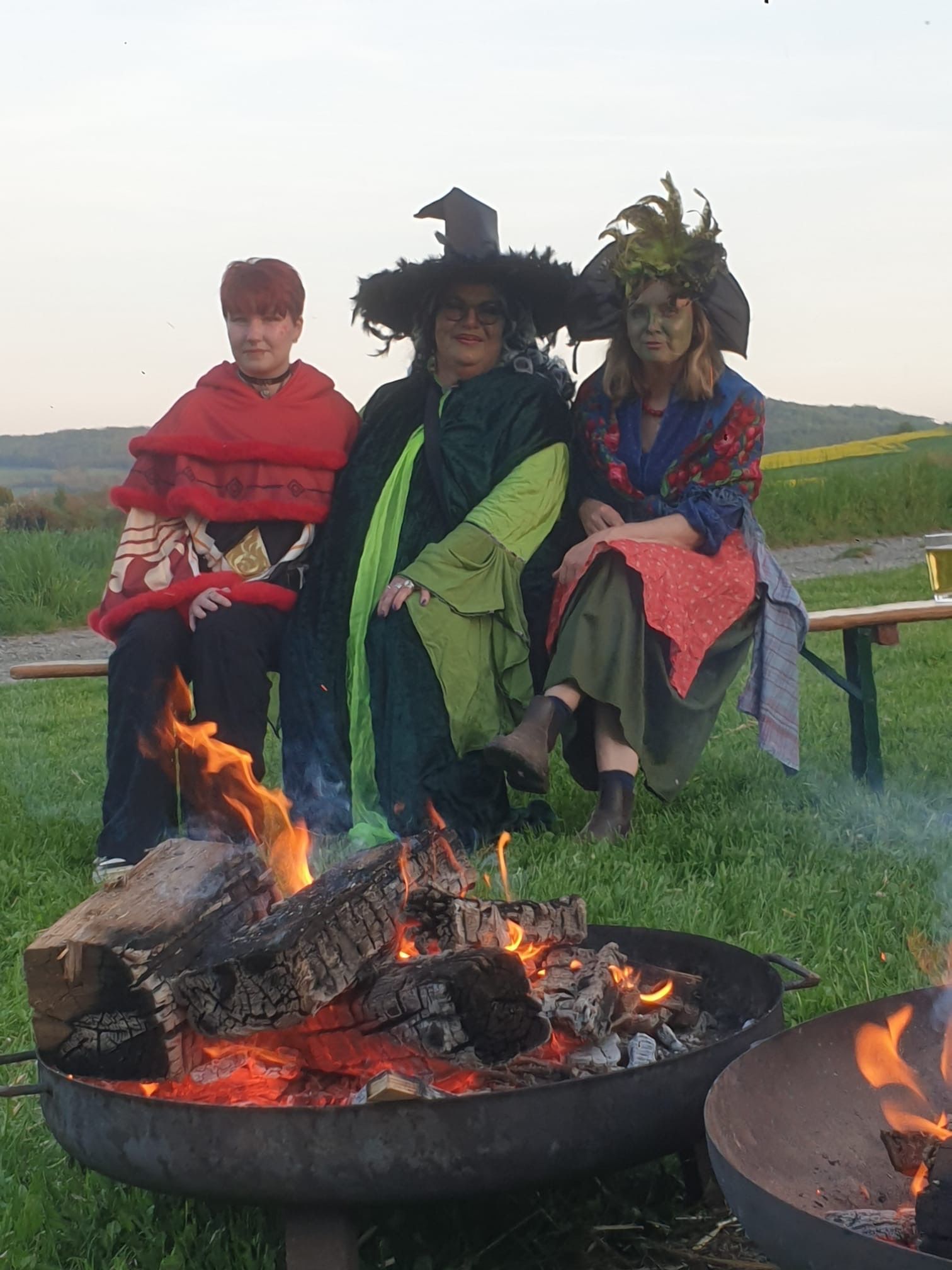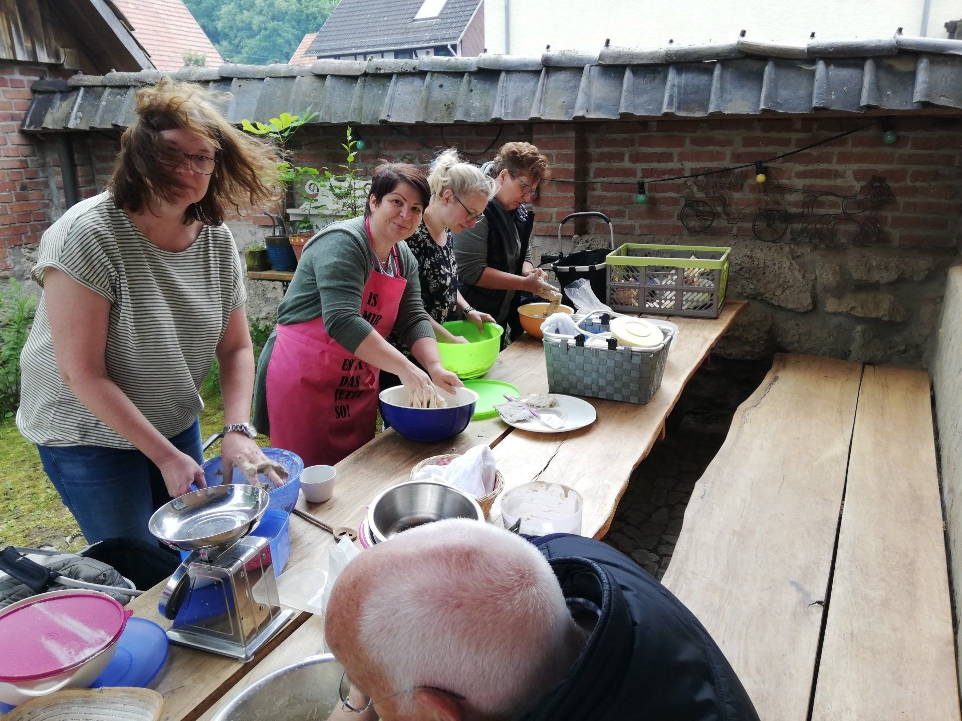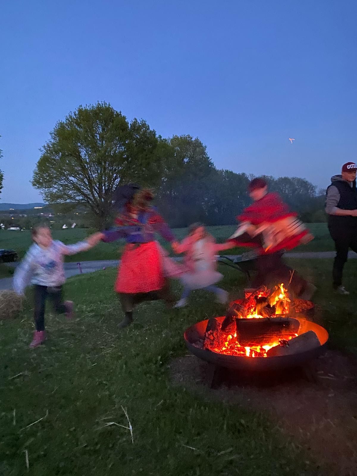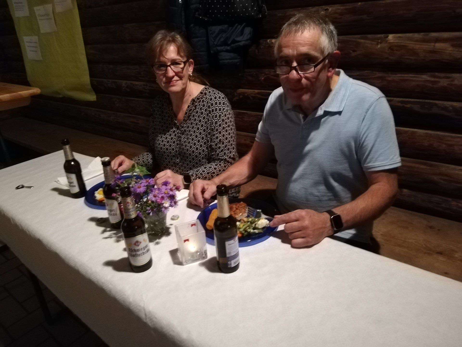 Es gab zu Beginn das Kuchenbuffet, über 16 Kuchen haben wir stolz präsentiert. Dann ging es mit leckeren Bratwürtschen weiter und bei Einbruch der Dunkelheit gab es Stockbrotteig für die Kinder und buntes Feuer an zwei Feuerstellen.