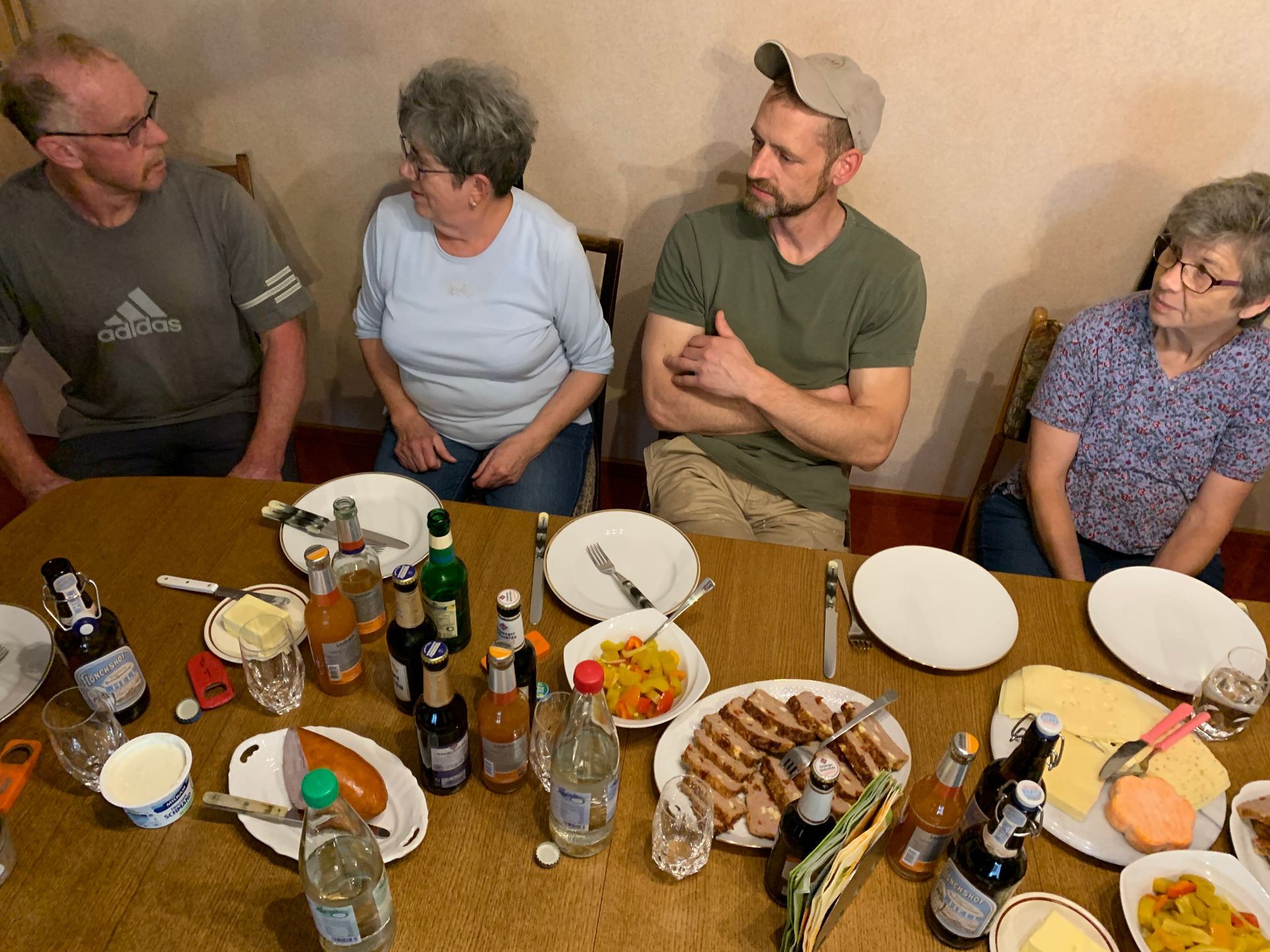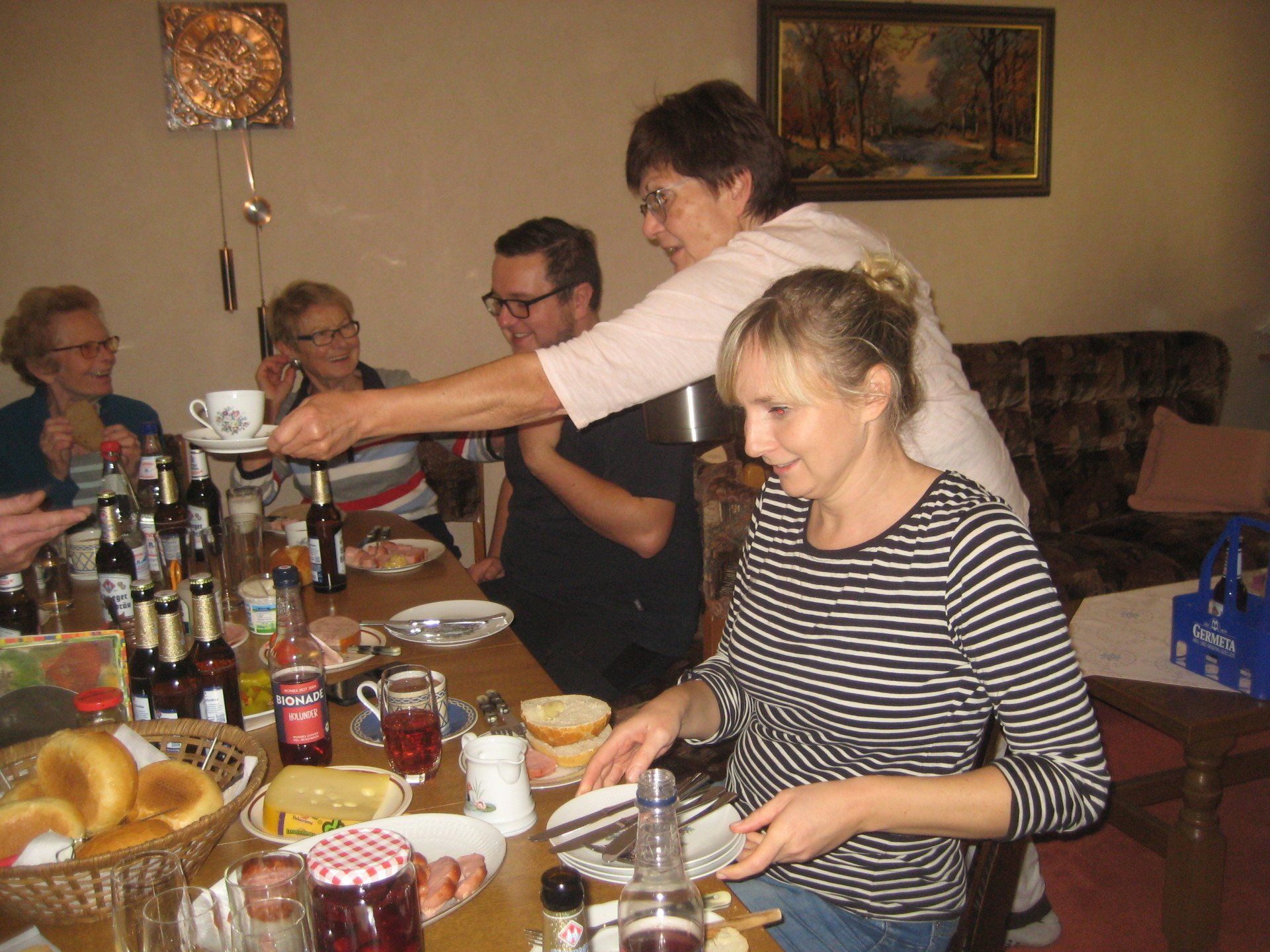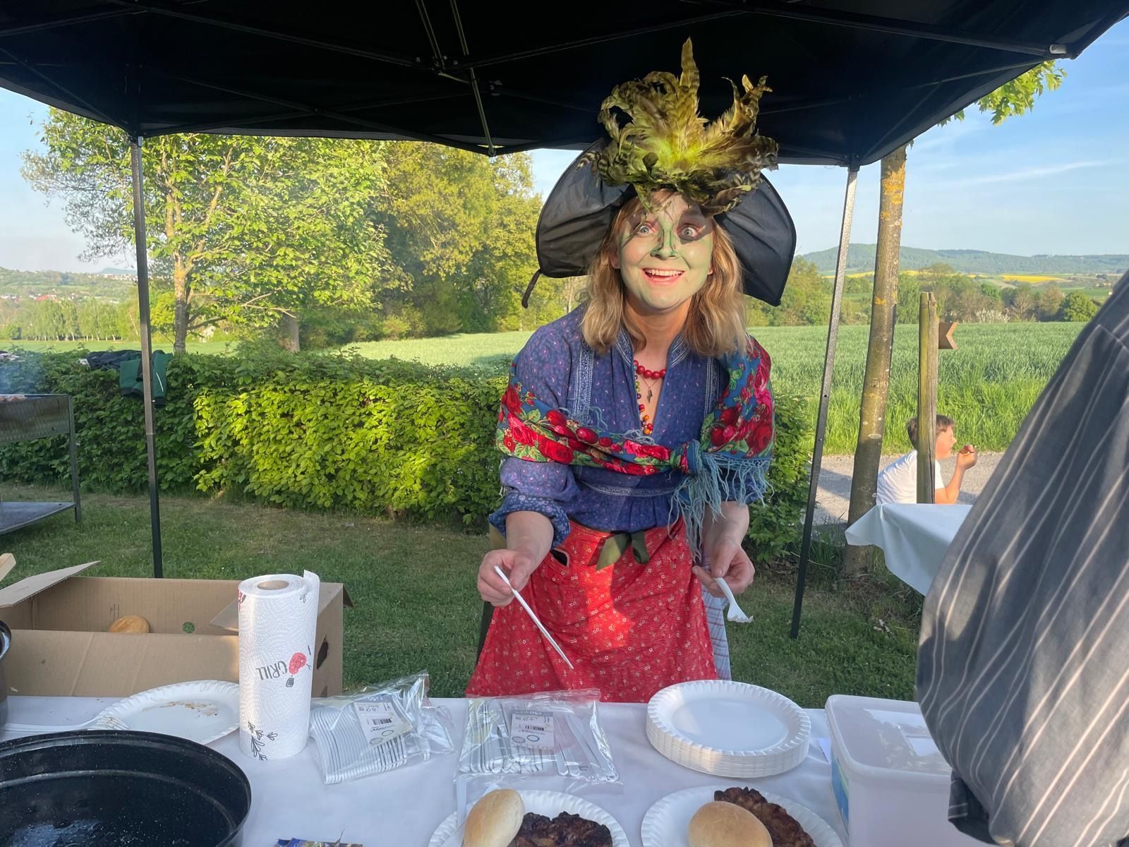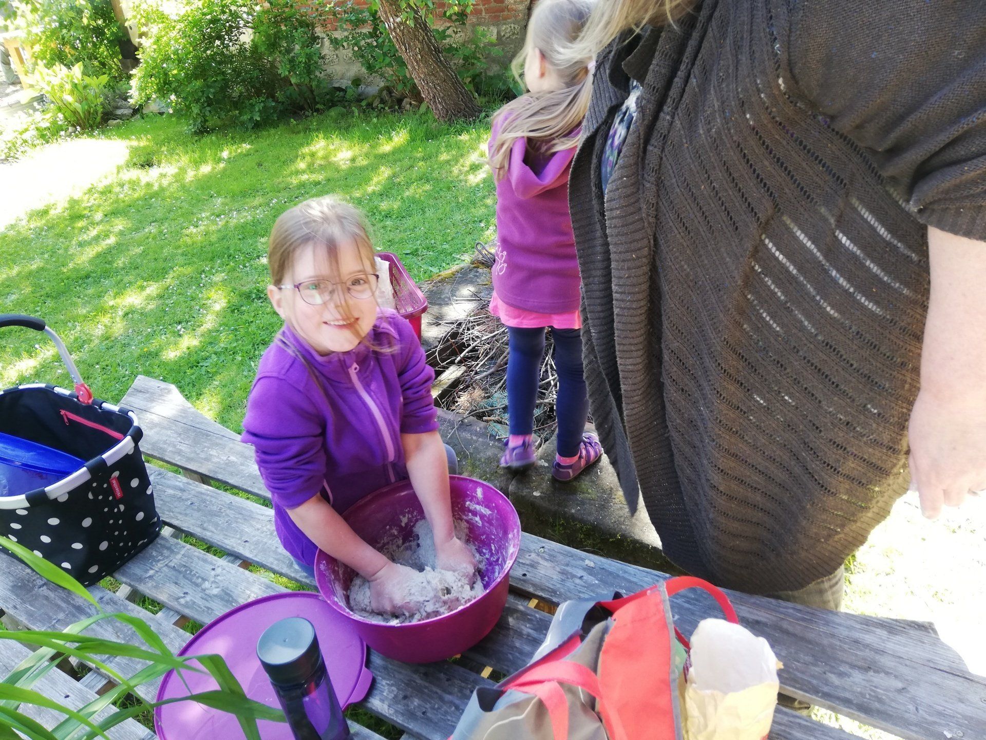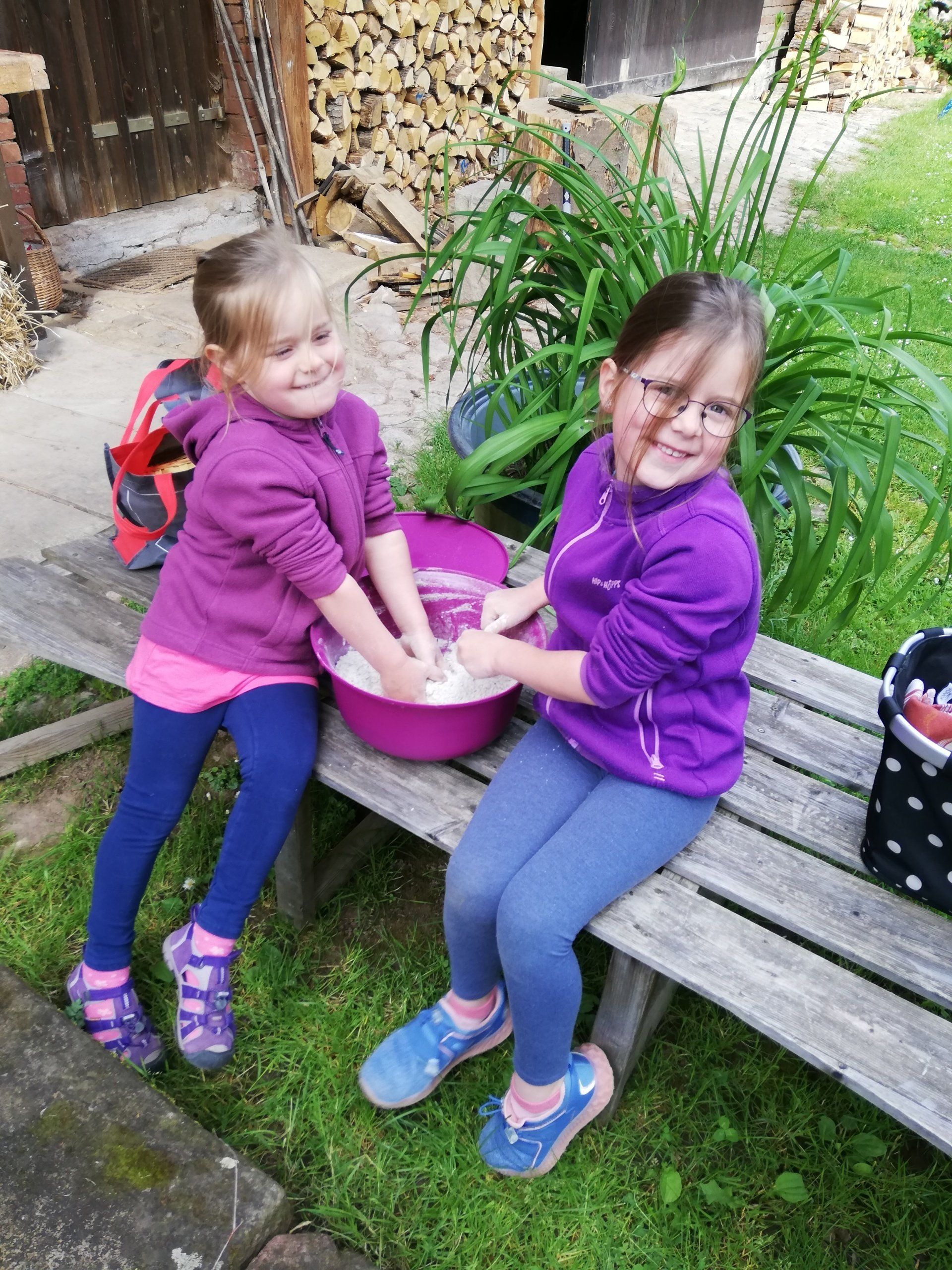 Es gab zu Beginn das Kuchenbuffet, über 16 Kuchen haben wir stolz präsentiert. Dann ging es mit leckeren Bratwürtschen weiter und bei Einbruch der Dunkelheit gab es Stockbrotteig für die Kinder und buntes Feuer an zwei Feuerstellen.