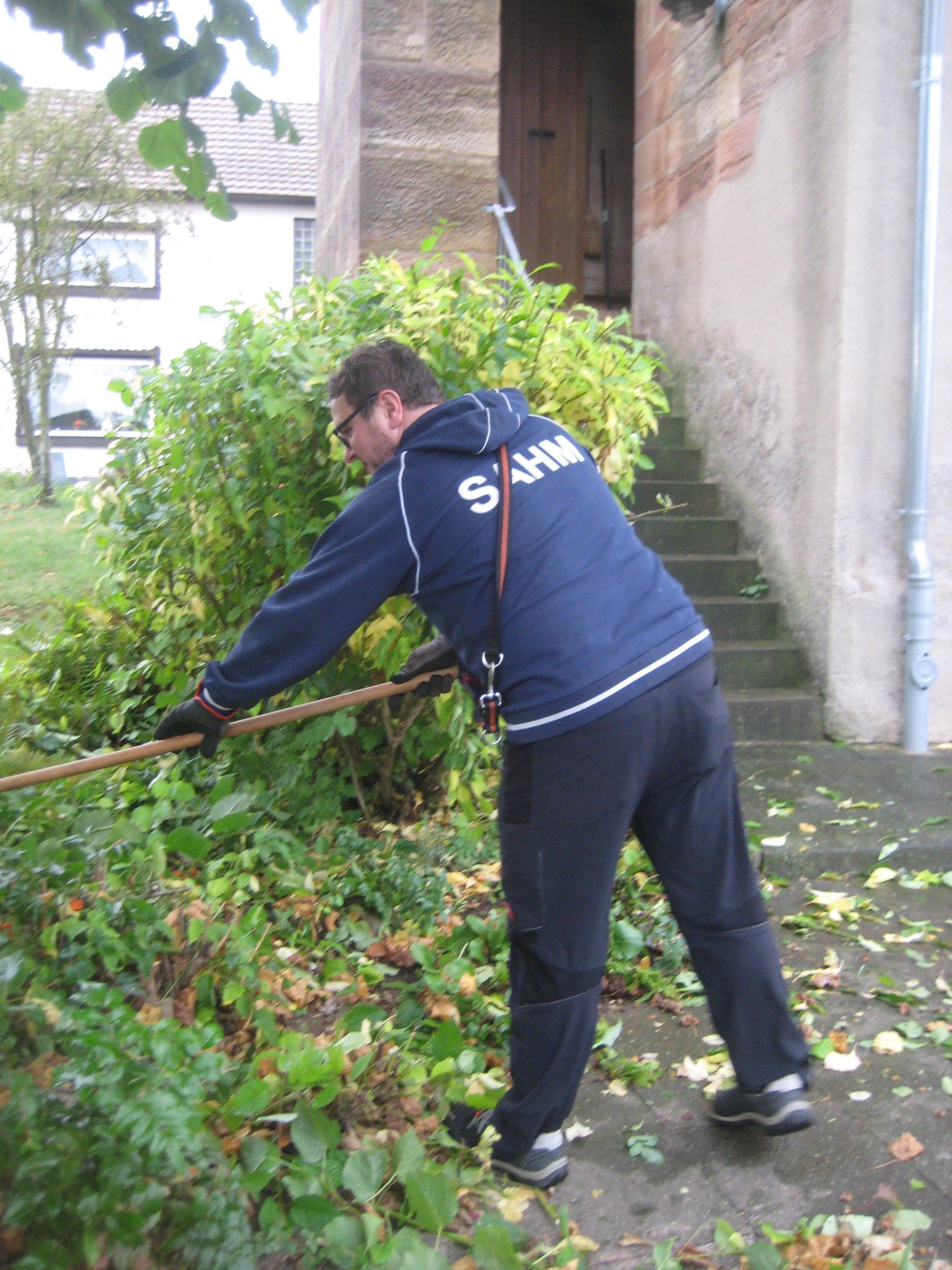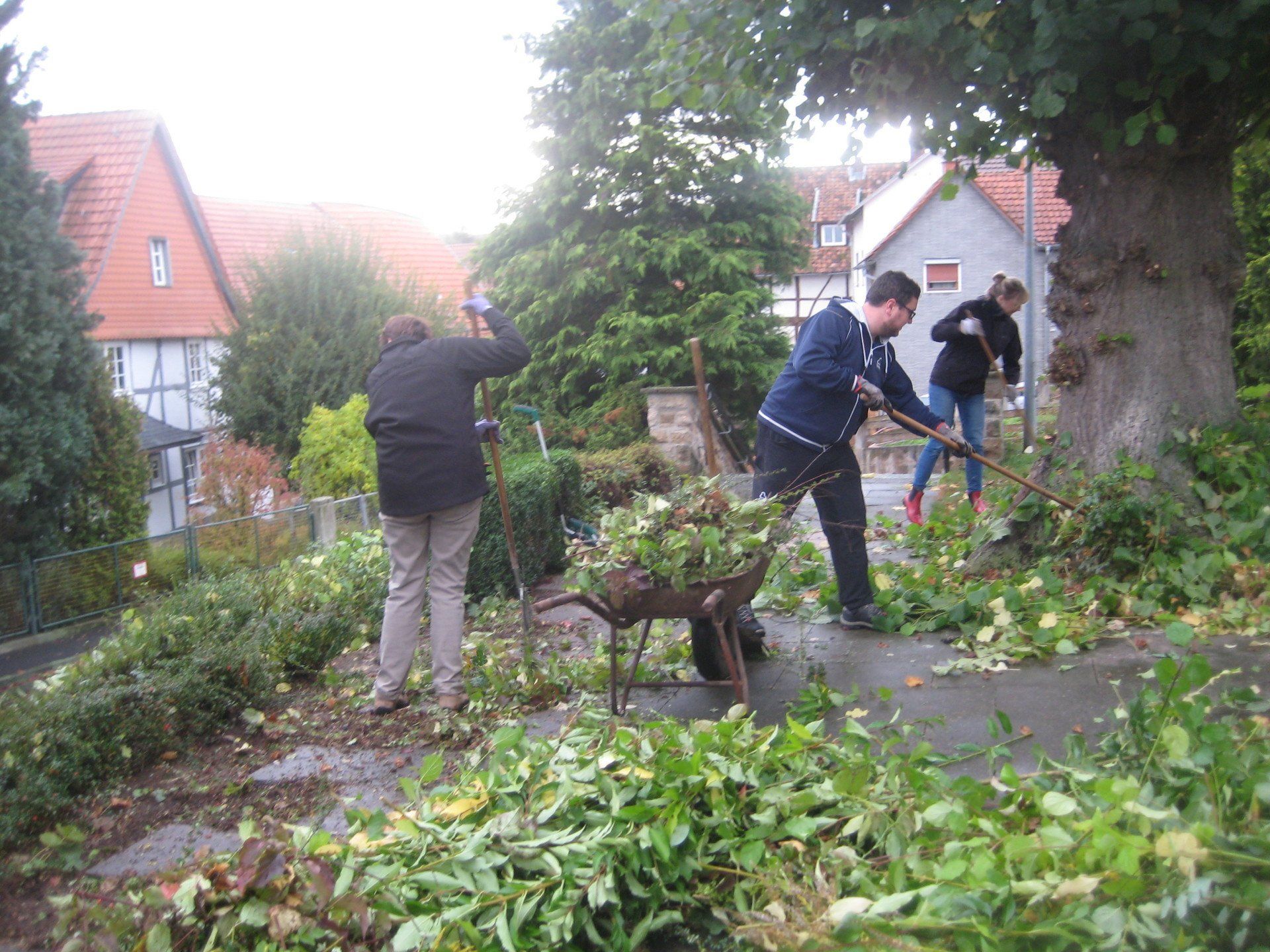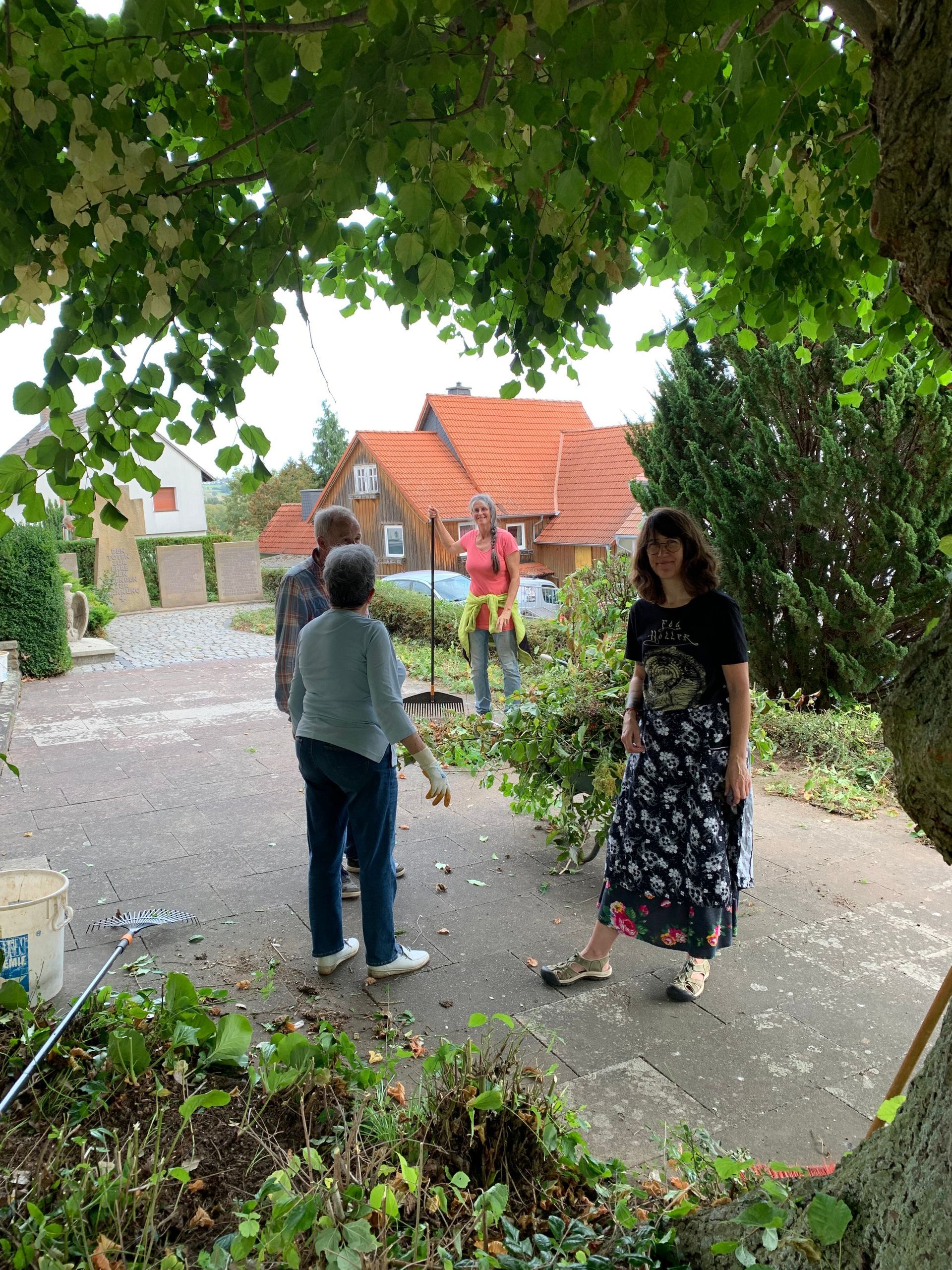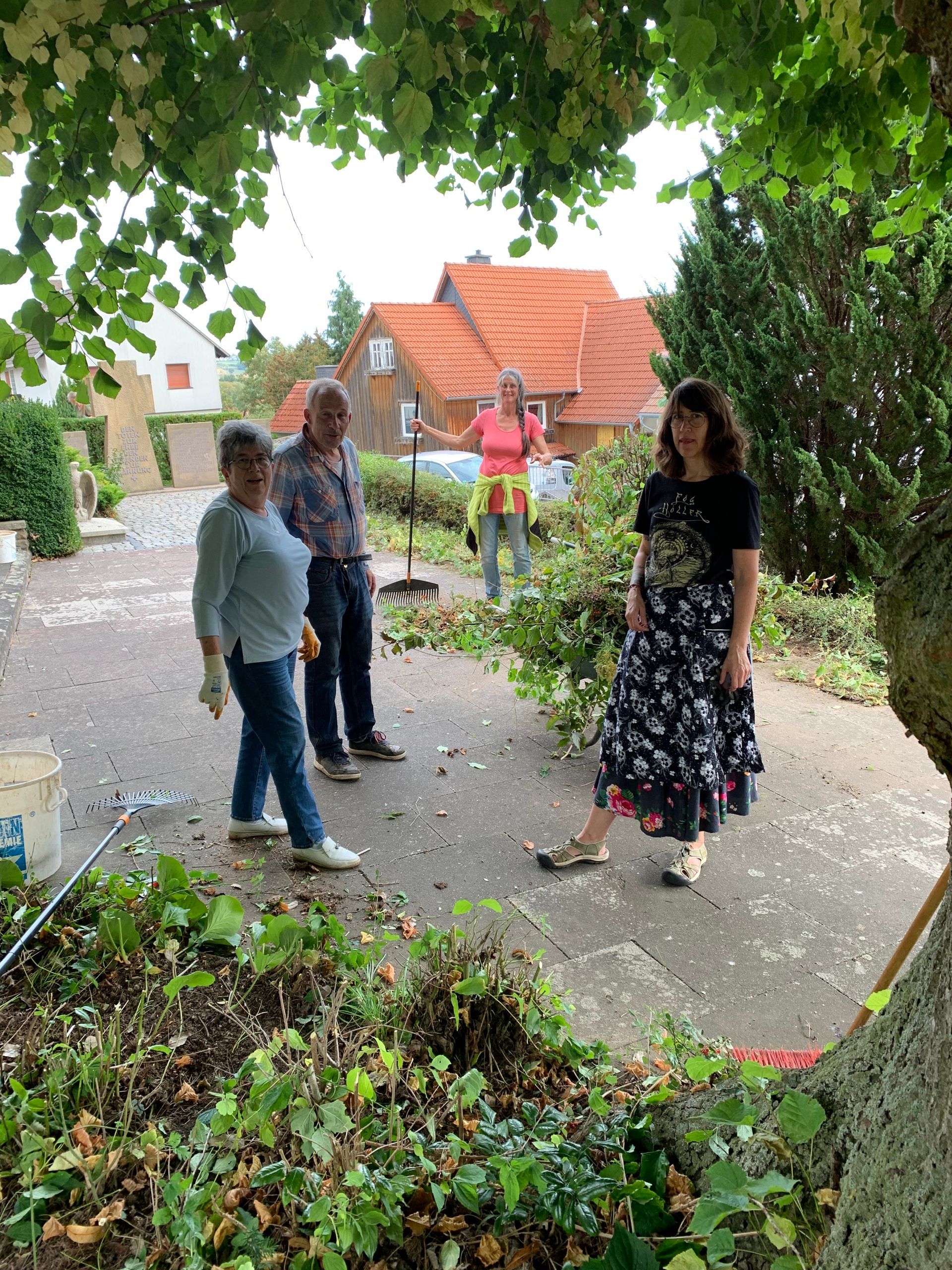 Beim Putz rund um die Grillhütte am 18.10. haben sich Freiwillige versammelt, um die Grünflächen und das Holz der Hütte wieder in Schuss zu bringen. Hecken wurden geschnitten, die Grünflächen gesäubert und Lasur aufgetragen. Nur einen Tag später hat sich wieder eine Gruppe dem Putz rund um die Kirche gewidmet. Herbstliche Arbeiten wurden trotz Schauer erledigt, umso größer war die Freude, als es nach der Arbeit zum gemeinsamen Essen ins Trockene ging. Wieder haben der Heimatverein und der Kirchenvorstand hier zusammengearbeitet, um die Flächen zu pflegen.