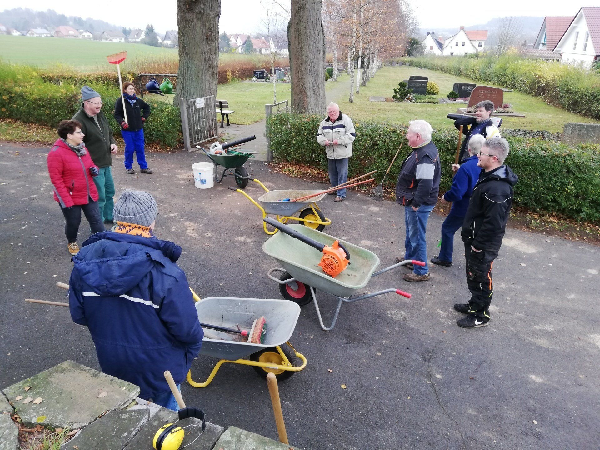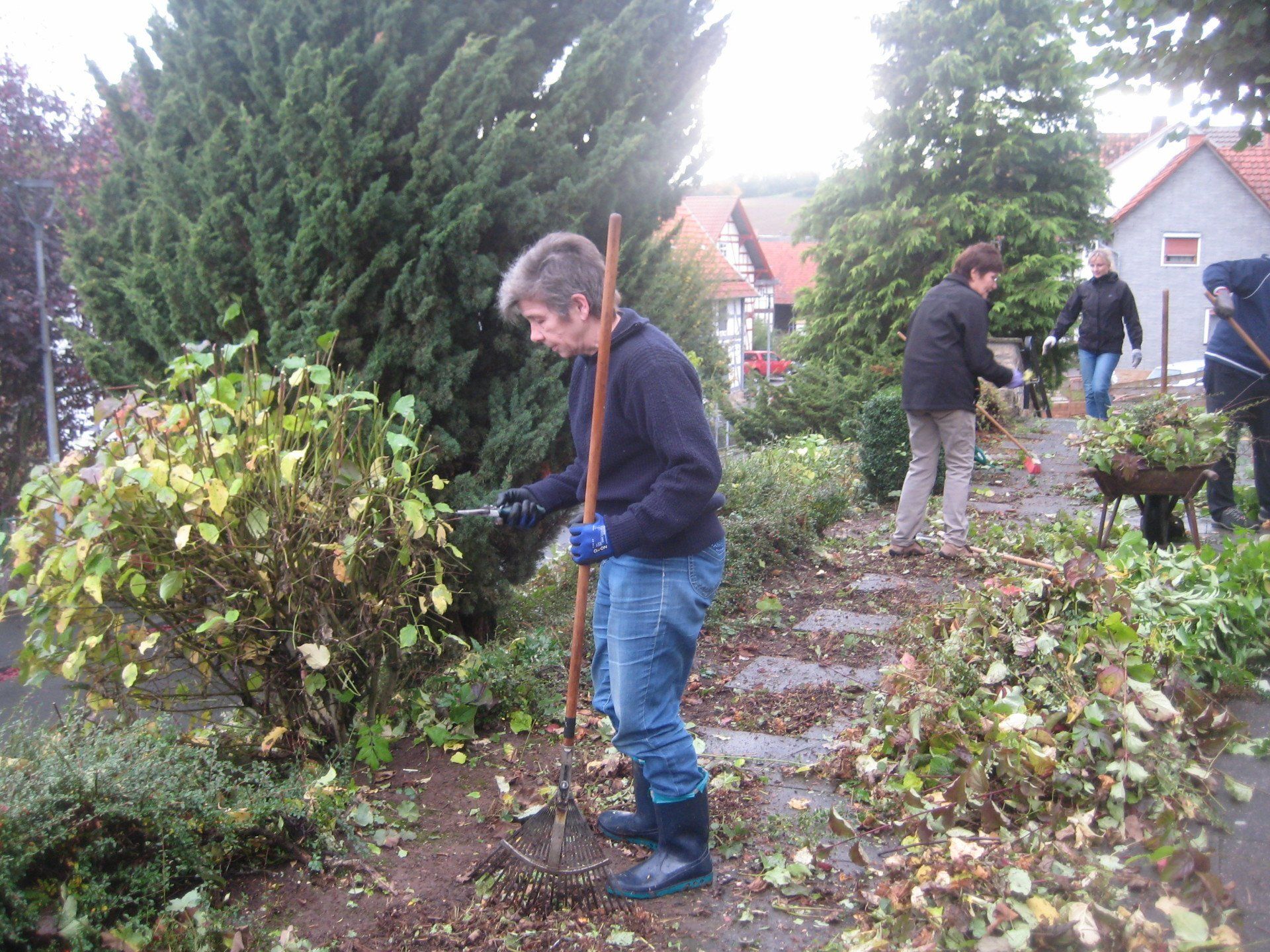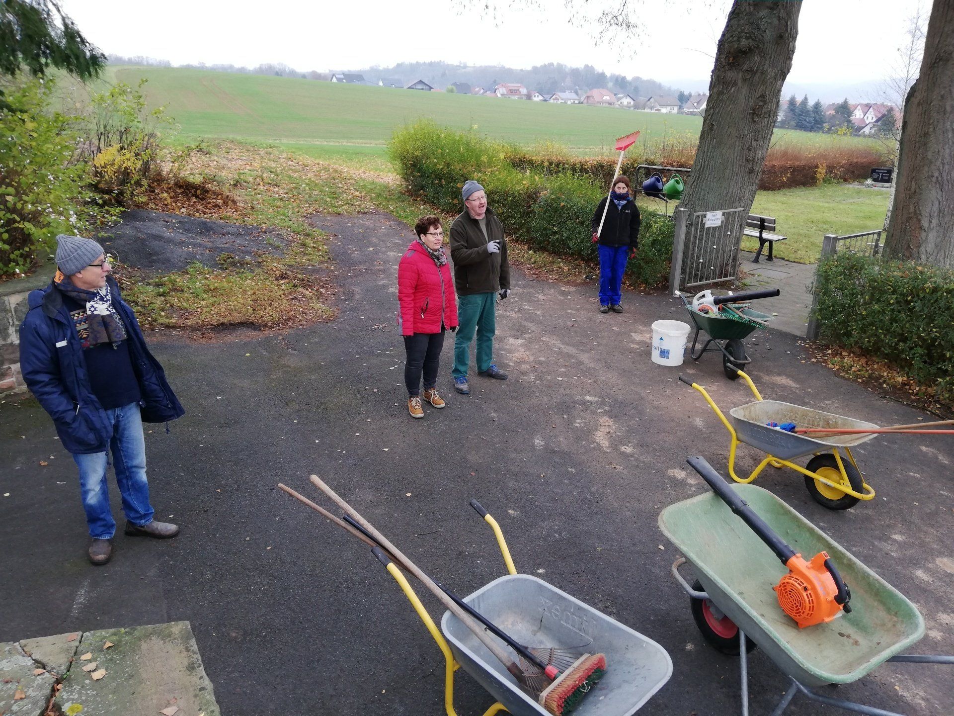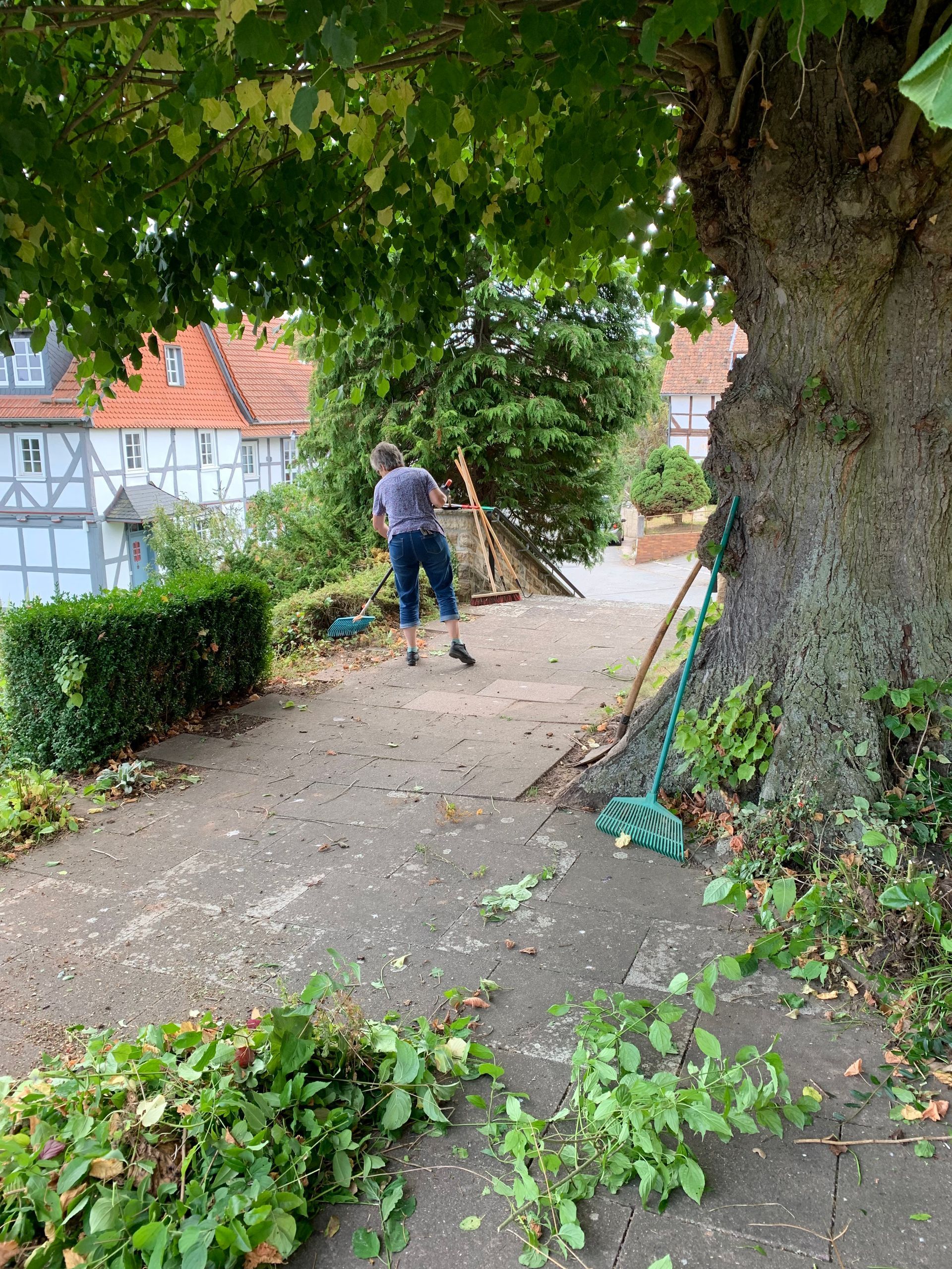 Beim Putz rund um die Grillhütte am 18.10. haben sich Freiwillige versammelt, um die Grünflächen und das Holz der Hütte wieder in Schuss zu bringen. Hecken wurden geschnitten, die Grünflächen gesäubert und Lasur aufgetragen. Nur einen Tag später hat sich wieder eine Gruppe dem Putz rund um die Kirche gewidmet. Herbstliche Arbeiten wurden trotz Schauer erledigt, umso größer war die Freude, als es nach der Arbeit zum gemeinsamen Essen ins Trockene ging. Wieder haben der Heimatverein und der Kirchenvorstand hier zusammengearbeitet, um die Flächen zu pflegen.