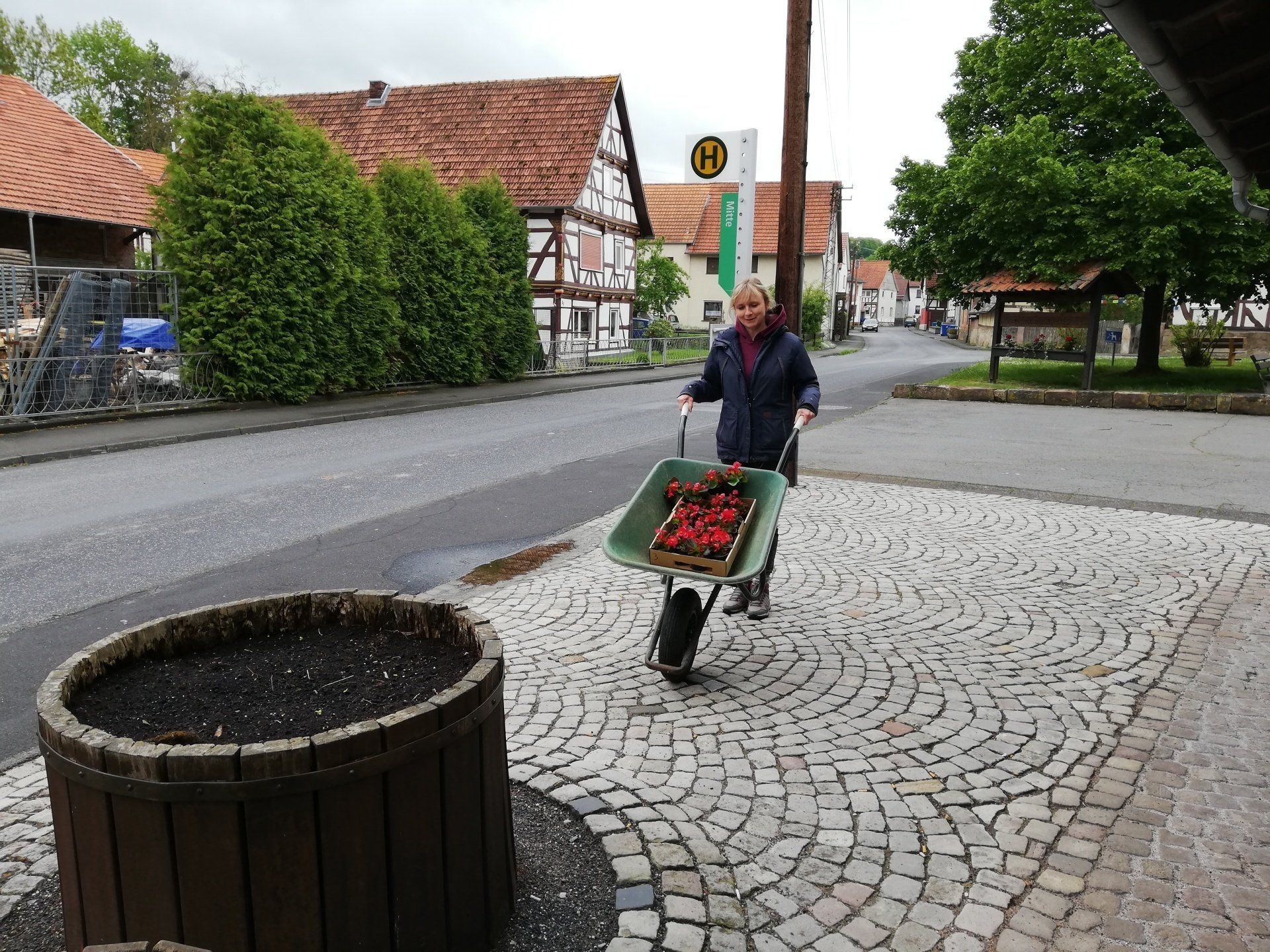 Da draußen das Vereinsleben so langsam wieder losgehen kann, hat sich die Gruppe von Cathleen darum gekümmert, wie jedes Jahr die Blumenbehälter im Dorf zu bepflanzen. Eine Sammelbestellung wird hierzu mit der Stadt Eschwege organisiert, um die Aktion des Vereins zu unterstützen. Die Gruppe hat dann mit viel Damenkraft Ende Mai gestartet, Blumen arrangiert, Erde erneuert und natürlich gegossen. Habt ihr toll gemacht - herzlichen Dank dafür, dass ihr das Dorf zusammen schöner macht.