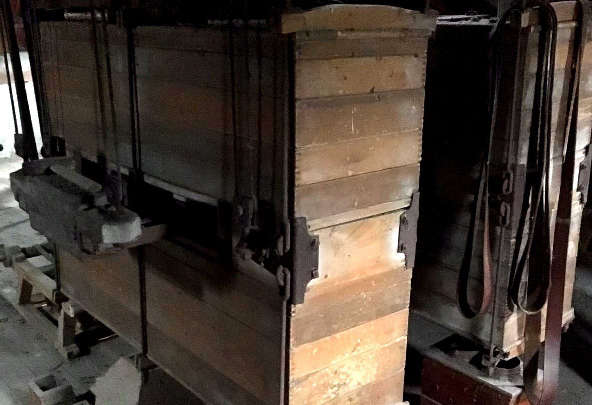 Jens erklärt, dass die Mühle damals den neuesten Standards entsprach, weil sein Großvater stets mit der Zeit ging, was die Anschaffung neuer Maschinen oder die Modernisierung der zahlreichen Arbeitsschritte anging. Viele Maschinen sind noch vorhanden, wie z.B. der Plansichter von 1931. Der Sichter trennte die Kornbestandteile. Durch den Trennungsprozess wurde das Mahlgut in Bestandteile unterschiedlicher Dichte getrennt, das Mehl sozusagen in unterschiedliche Mineralstoffgehalte zerteilt.